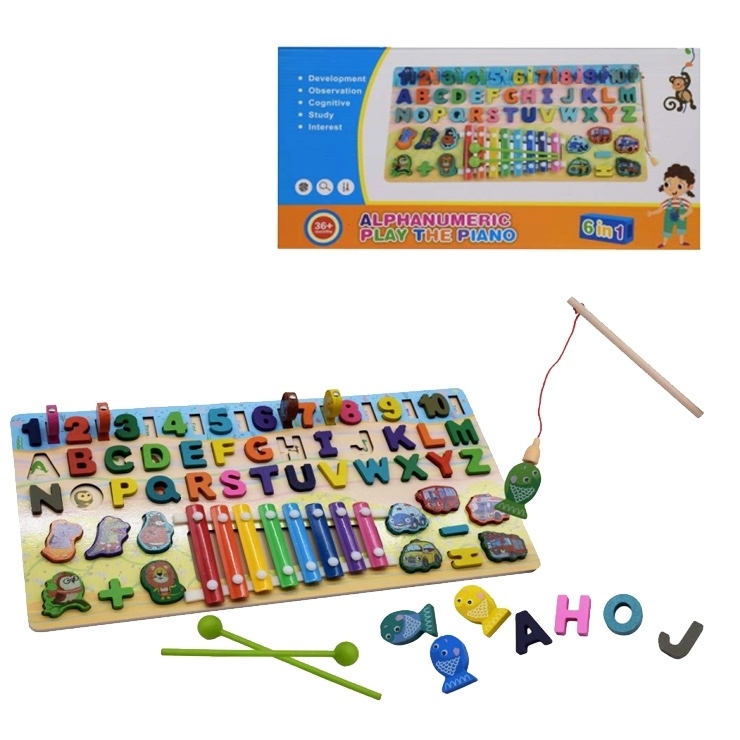 Zábavné učení se písmen a číslic. Když tě to přestane bavit, zahraj si buď chytáním rybek, hraním na xylofonu nebo vkládáním zvířátek do správných políček. Dřevěná hra pro rozvíjení logického myšlení, jemné motoriky a kreativity.