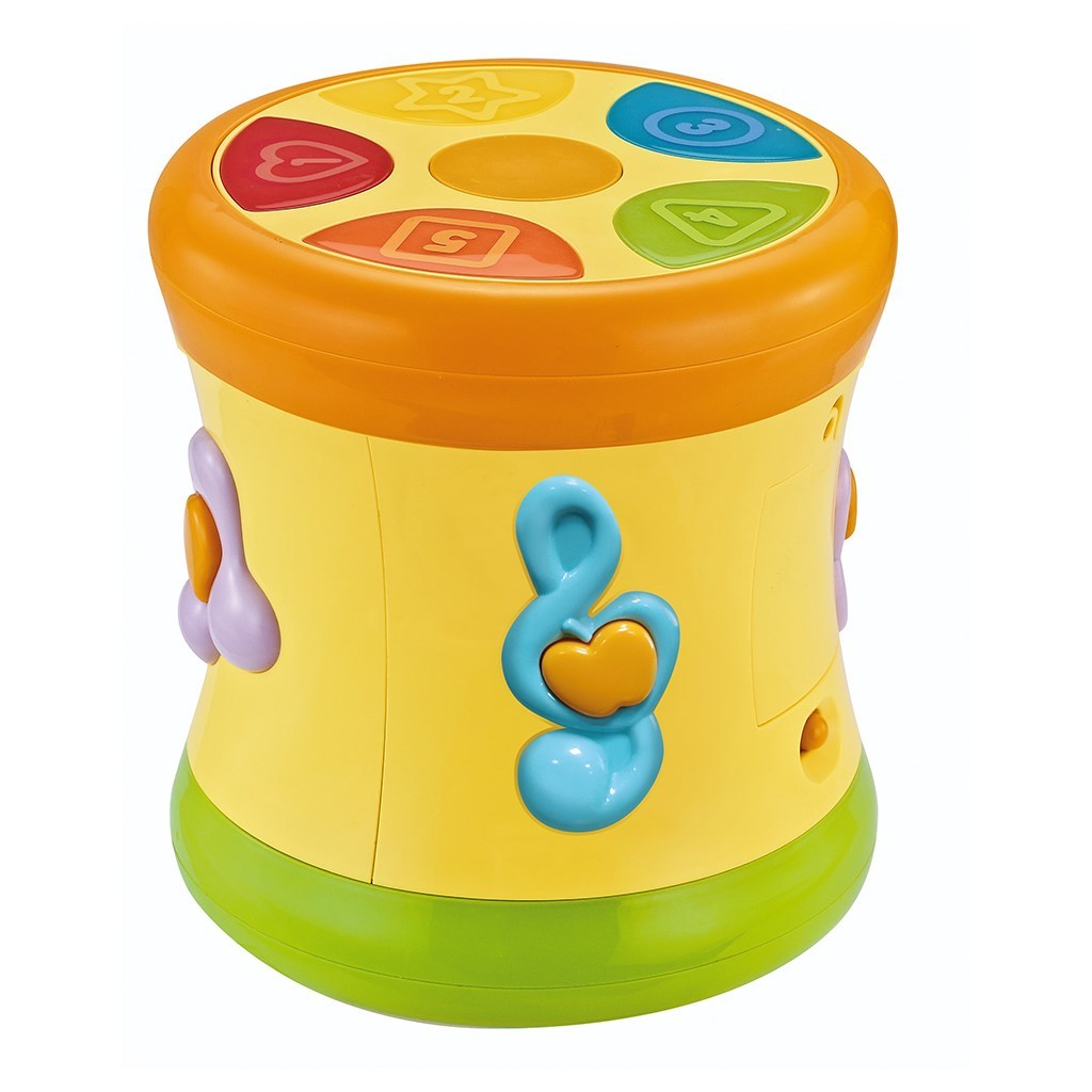 Úžasná edukační hračka Bayo bubínek má velmi příjemné barvy a atraktivní design. Má tlačítka ze všech stran, svítí barevnými světýlky a hraje písničky, melodie na kytaru a lesní roh, rytmy bubnů a obsahuje i anglickou výslovnost čísel barev a tvarů. Hračka stimuluje správný rozvoj empirických schopností dítěte. Vyrobeno z kvalitního plastového materiálu. Určeno pro děti od 10 měsíců. Napájení 3x1,5 V bateriemi typu AA. Baterie nejsou součástí balení.