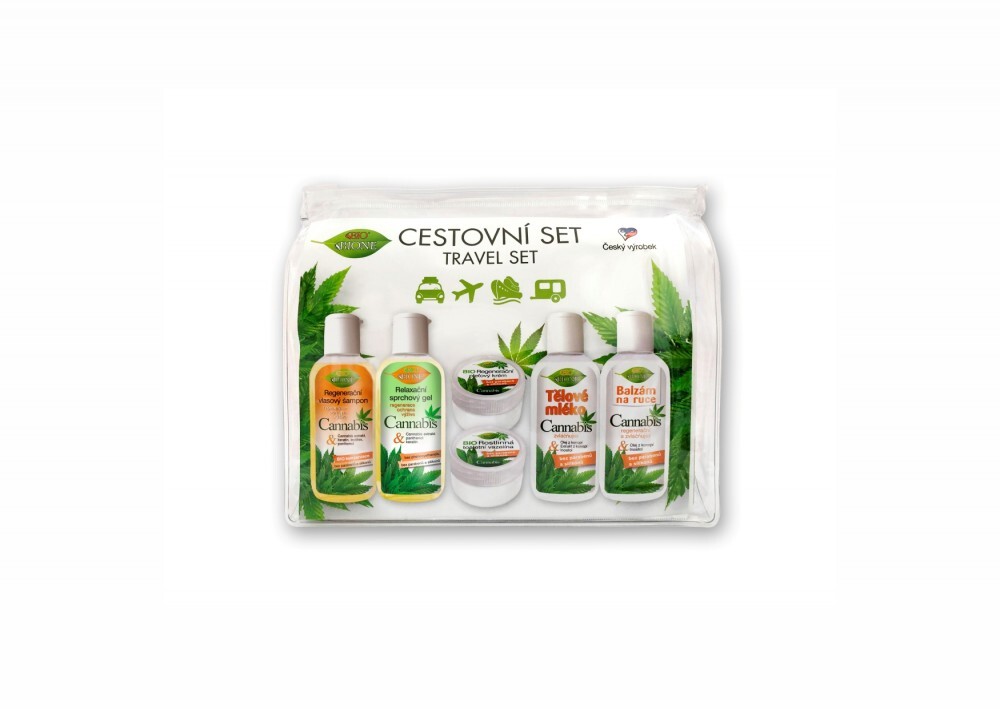 Cestovní sada Bione Cosmetics obsahuje vše, co můžete při cestování potřebovat. Najdete v ní celkem šest produktů. Sada produktů BIO Cannabis obsahuje regenerační vlasový šampon, regenerační sprchový gel, tělové mléko, balzám na ruce, zvláčňující a regenerační pleťový krém a rostlinnou toaletní vazelínu. Cestovní lahvičky na dovolenou cesty výlety víkendové pobyty wellness cestování letadlem výletní lodě...