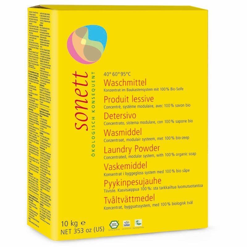 Prací prostředek SONETT obsahuje jako hlavní účinnou látku mýdlo které se vyrábí z různých rostlinných olejů, palmového, řepkového, kokosového a olivového, a to vařením s louhem. Oleje pocházejí zčásti z ekologické resp. bio-dynamické produkce. Mýdlo jako aktivní mycí látka v sobě jedinečným způsobem spojuje všechny, pro proces praní nezbytné, vlastnosti smáčení nečistoty, jejího rozpouštění a pohlcení. Soda se vyrábí přeměnou vápna pomocí kuchyňské soli. ORTOKŘEMIČITAN vzniká roztavením křemičitého písku a sody. Soda a ortokřemičitan posilují svou zásaditostí mycí louh a podporují uvolňování zejména mastných látek. Zeolit A a vrstevnatý křemičitan mají jako výchozí surovinu křemičité horniny. Vedle své vlastnosti poutat vápník ve vodě poutají tyto složky zároveň i organické látky rozpuštěné v prací vodě a barevné pigmenty a zabraňují jejich usazování na prádle. Derivát kokosového oleje podporuje mýdlo v jeho funkci rozpouštění tuků.