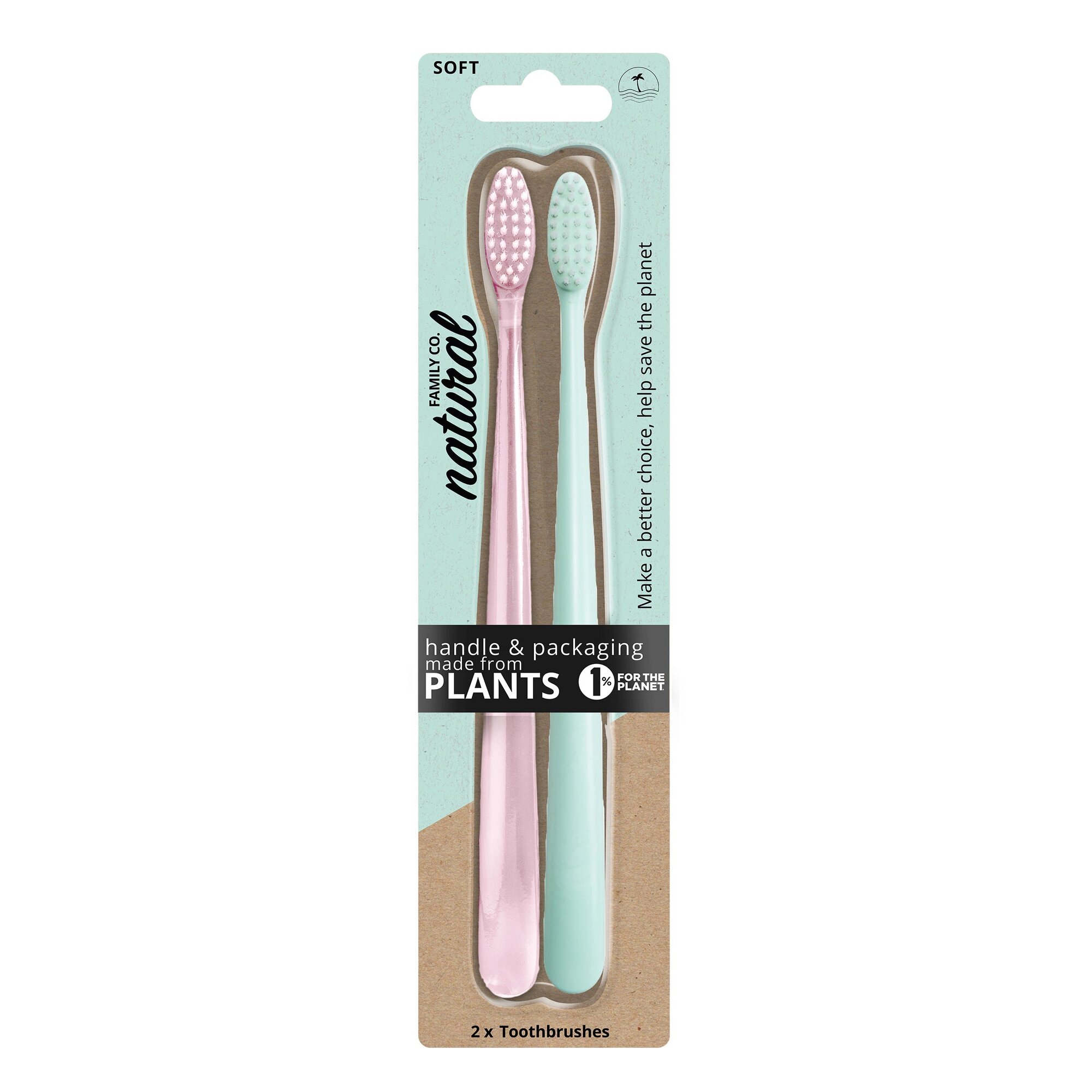 Jack n' Jill NFco. Sada zubních kartáčků SOFT - růžový + mátový (2 ks) - z kukuřičného škrobu bez gmo