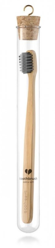 Ecoheart Bambusový kartáček ve skleněném pouzdře (extra soft) - černý