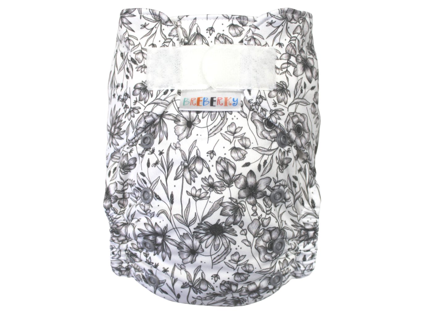 BIO Bambusová kapsová plenka (M) - Květy black and white SZ