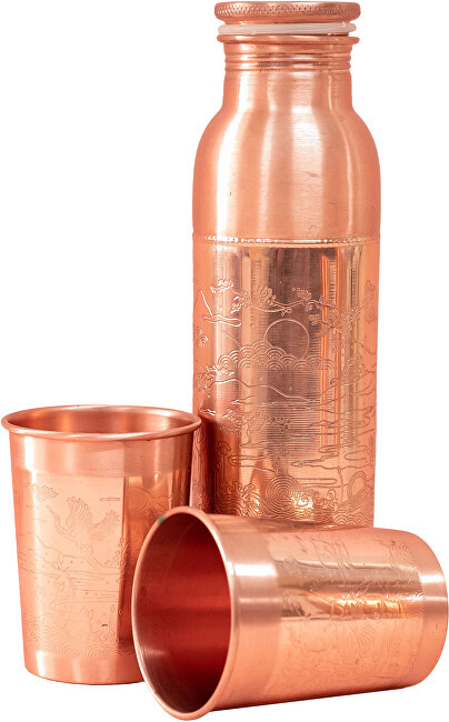 1x měděná láhev 900 ml 2x měděné pohárky 300 ml