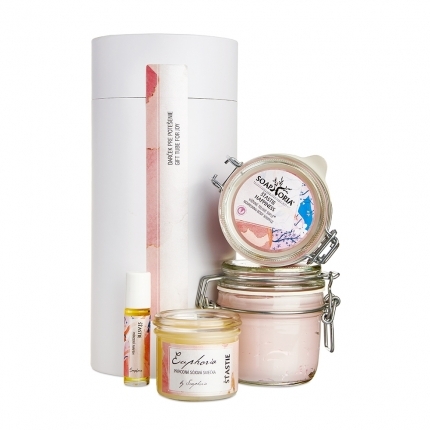 Toužíte svým blízkým darovat výjimečný praktický dárek, který rozzáří jejich oči radostí a nebude na něj „sedat prach“? Voňavá dárková sada zabalená v bílé eko papírové tubě představuje ideální volbu! Tuba v krásně čistém a elegantním bílém provedení ukrývá ručně vyrobenou českou přírodní kosmetiku v neodolatelné vůni - univerzální dárek naprosto pro každého!VŮNĚPísmena ukrývající blaho, mozaiku drobných radostí v opojení kouzelné ovocně-květinové vůně. Vyčarujte si na rtech úsměv, kterým obdarujete svět. Příjemně nasládlá ovocně-květinová vůně ukrývající svěží tropické citrusovité tóny a tóny jemných květů. Vrchní tóny udávají plody citrónu, sicilských pomerančů a hořkých grapefruitů, které jsou zjemněny esencí růží, vznešeného jasmínu a broskve. Vyváženost a hloubku umocňuje mošusový základ čarodějky skvrnité.OBSAH> Sprchovací pěna (255ml) - jemná sprchovací pěna unikátní konzistence vytvořená pro ošetření pokožky a ozvláštnění každodenních očistných rituálů> Tělové suflé XXL (255ml) - unikátní šlehaný tělový krém v extra velkém balení, výjimečně výživná lahůdka pro pokožku celého těla a nezaměnitelný zážitek> Přírodní parfém (10ml) - přirozeně ženská a smyslná vůně ukrytá v přírodním základě parfému bez alkoholu> Eko sójová svíčka (125ml) - dokonalý doplněk interiéru, jeden z nejoblíbenějších výrobků vůbec, eko svíčka ve skleněném obalu s úžasnou vůní přírody> dárkové balení - bílá eko papírová tuba v unikátním elegantním designu