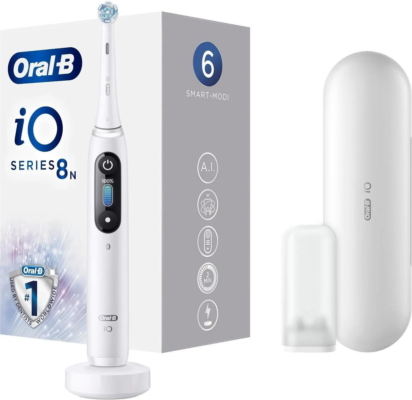 Oral-B iO Series 8 White Alabaster elektrický zubní kartáček, magnetický, 6 režimů, časovač, tlakový senzor, pouzdro