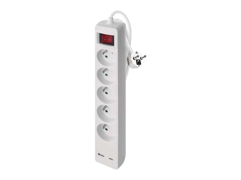 Prodlužovací přívod s vypínačem. 250V~/16A max. 3 zásuvky s dětskými clonkami. USB A+C 3,4 A, 17 W max. Délka přívodního kabelu 3 m. Vodič H05VV-F3G 1,5mm2.