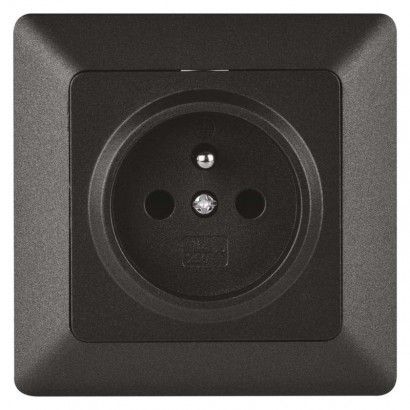 barva: anthracite|design: FRENCH|krytí: IP20|prodejní obal: 1 ks, závěs|produkt: zásuvka jednonásobná s ochranným kolíkem a dětskými clonkami|provedení: 1 nás.|typ: 250 V~/16 A max.|způsob montáže: do krabice