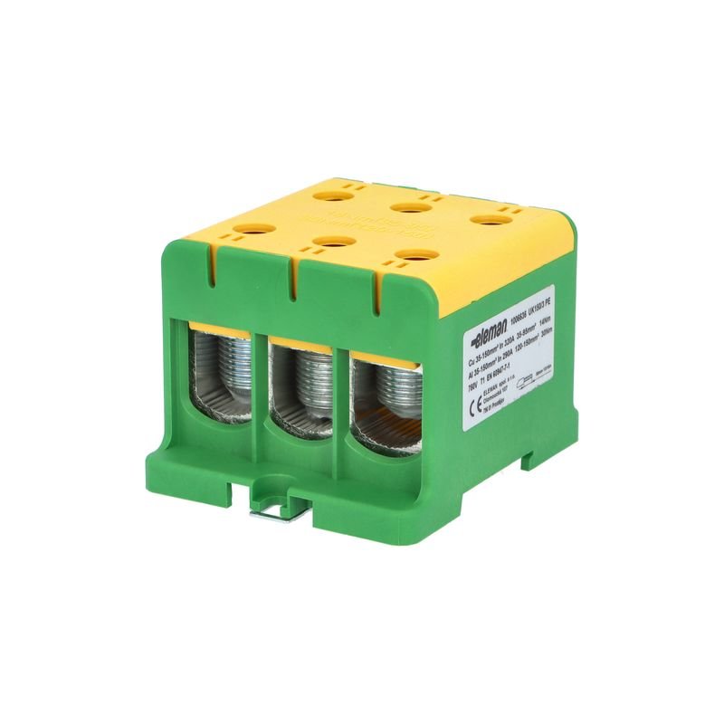 Svorka univerzální UK 150/3 PE, 320A, 1pól., AL/CU, krytá, zeleno-žlutá, na DIN/p /2090312