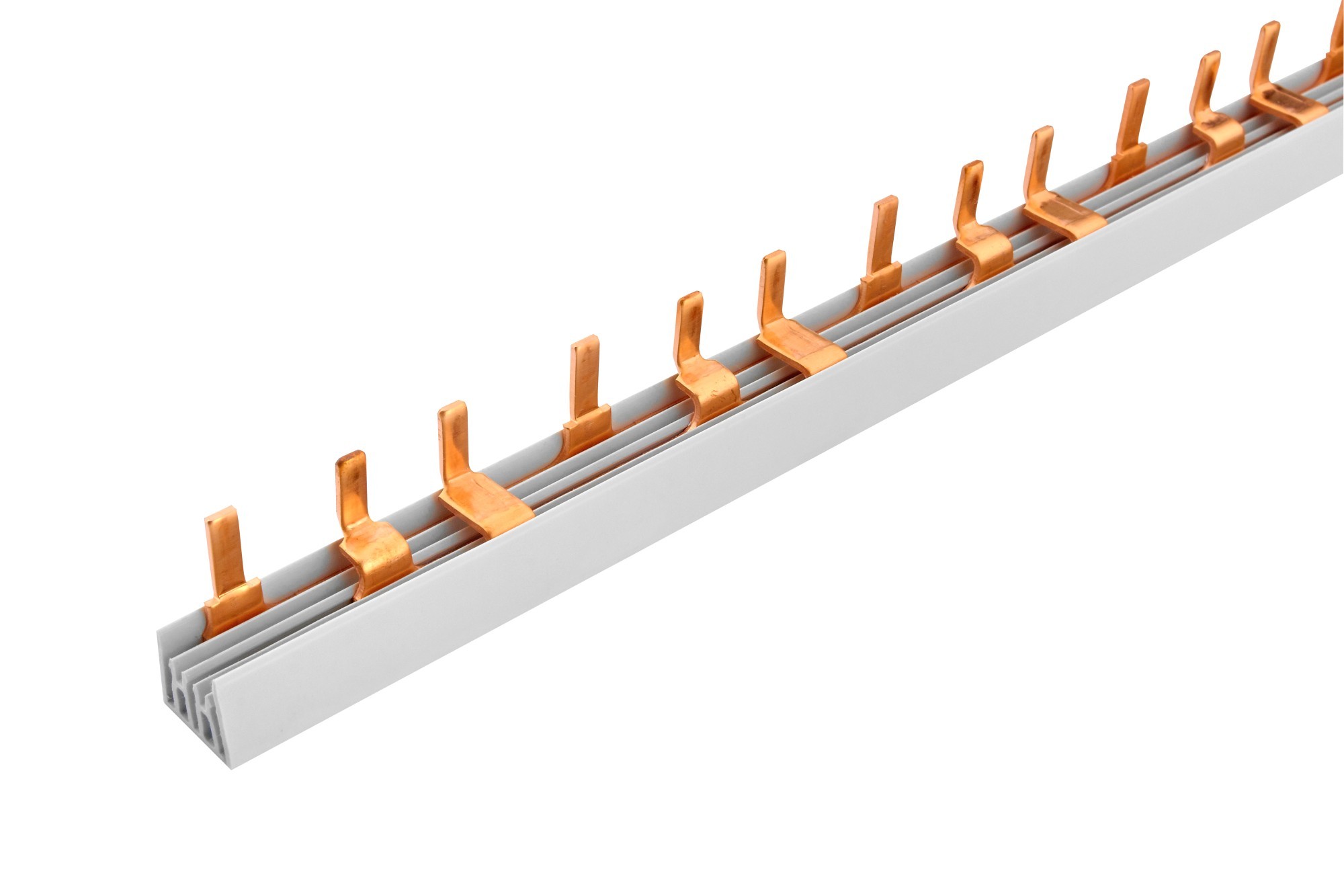 Propojovací fázové lišty umožňují propojení modulových přístrojů (např. jističů, chráničů, modulových vypínačů apod.) jednoduchým a profesionálním způsobem. Standardní délky lišt jsou 210 mm (propojení 12ti modulů) nebo 1 metr. Tyto standardní rozměry lze libovolně krátit (konce lišt doporučujeme osadit plastovými koncovkami). Ve srovnání s klasickou instalací pomocí kabelových mostů nabízí propojovací lišty následující výhody:• spolehlivé přiřazení fází• zpřehlednění rozváděče• rychlejší instalace - úspora času• kompaktní rozměry