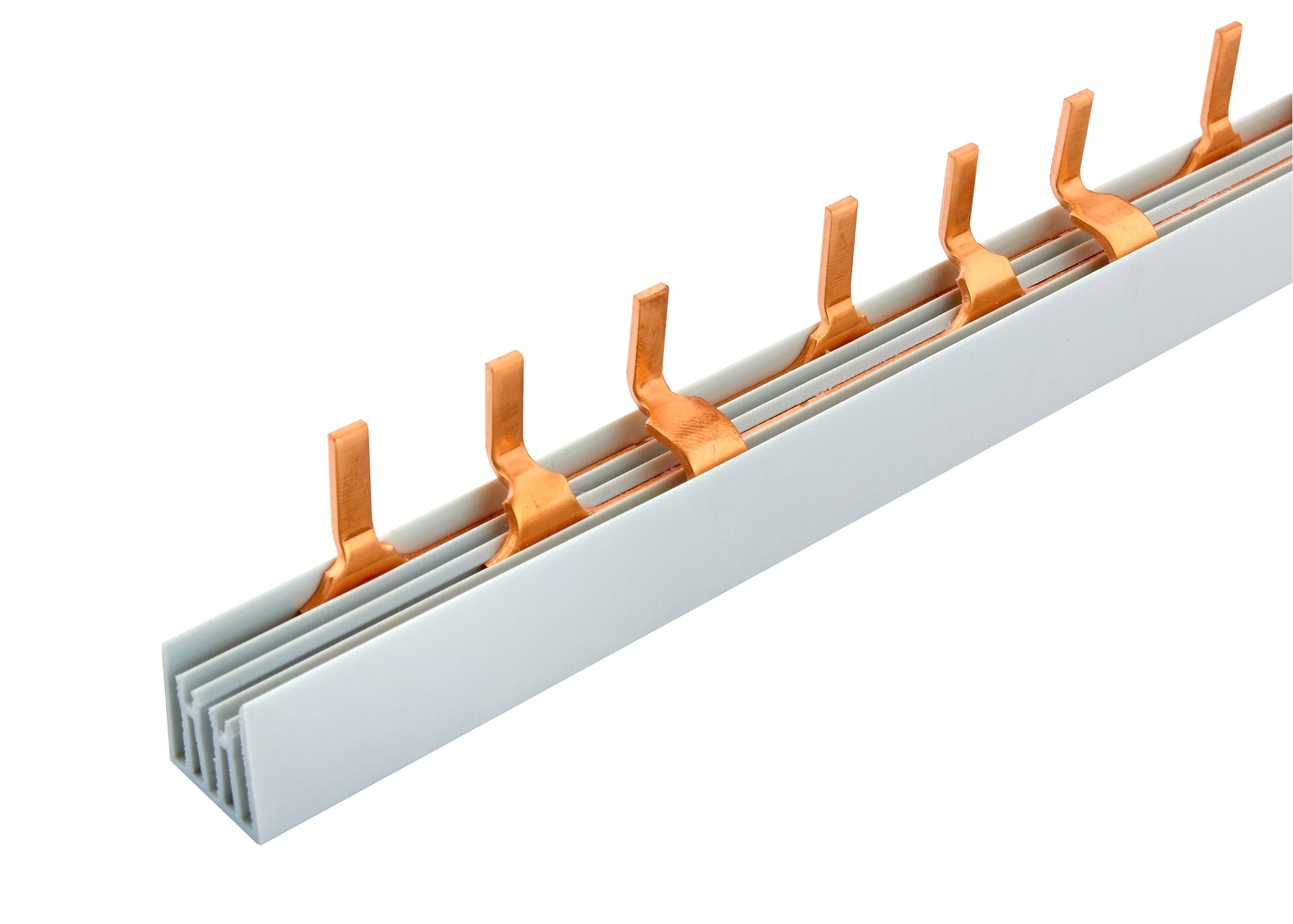 Propojovací fázové lišty umožňují propojení modulových přístrojů (např. jističů, chráničů, modulových vypínačů apod.) jednoduchým a profesionálním způsobem. Standardní délky lišt jsou 210 mm (propojení 12ti modulů) nebo 1 metr. Tyto standardní rozměry lze libovolně krátit (konce lišt doporučujeme osadit plastovými koncovkami). Ve srovnání s klasickou instalací pomocí kabelových mostů nabízí propojovací lišty následující výhody:• spolehlivé přiřazení fází• zpřehlednění rozváděče• rychlejší instalace - úspora času• kompaktní rozměry
