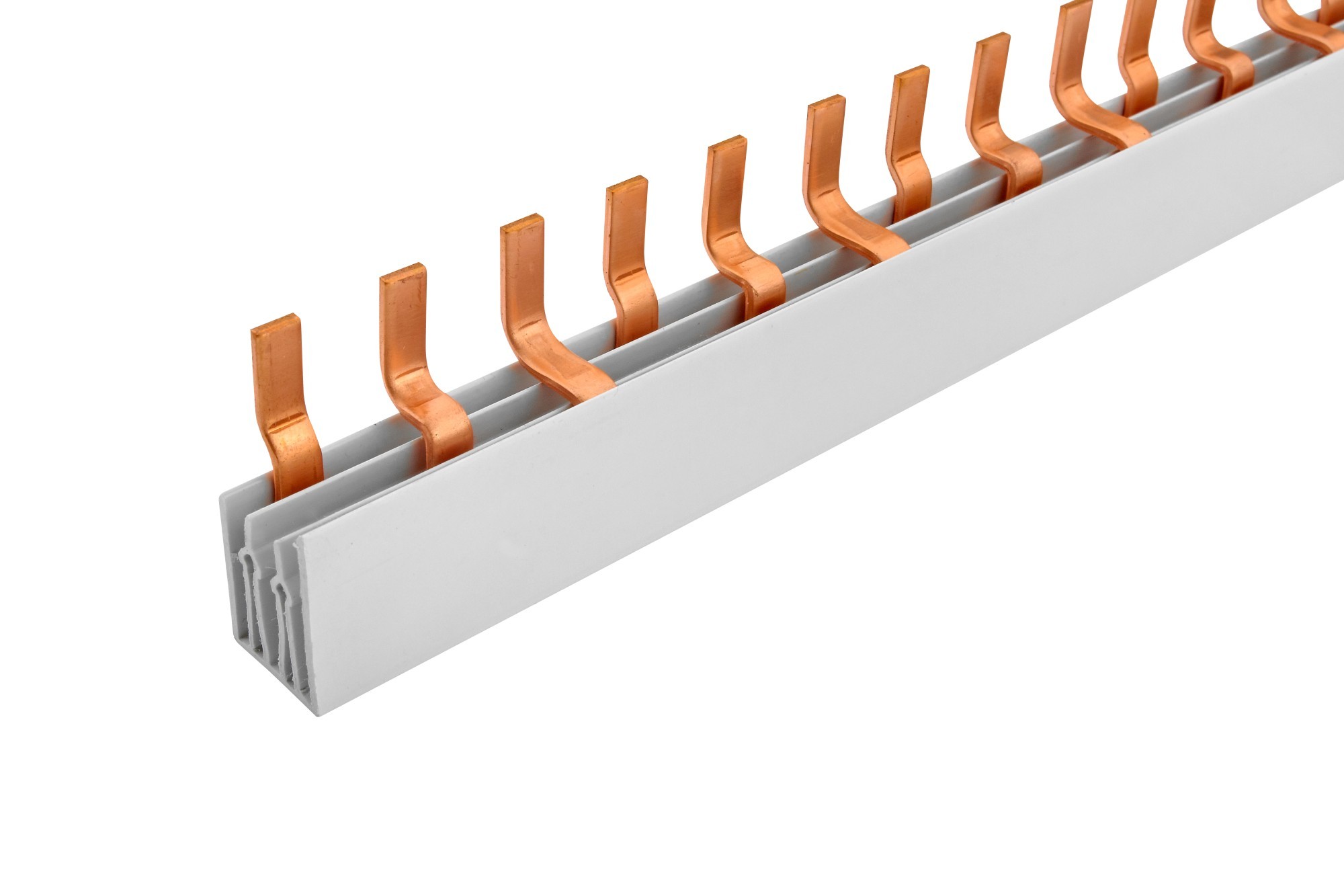 Propojovací fázové lišty umožňují propojení modulových přístrojů (např. jističů, chráničů, modulových vypínačů apod.) jednoduchým a profesionálním způsobem. Standardní délky lišt jsou 210 mm (propojení 12ti modulů) nebo 1 metr. Tyto standardní rozměry lze libovolně krátit (konce lišt doporučujeme osadit plastovými koncovkami). Ve srovnání s klasickou instalací pomocí kabelových mostů nabízí propojovací lišty následující výhody:• spolehlivé přiřazení fází• zpřehlednění rozváděče• rychlejší instalace - úspora času• kompaktní rozměry