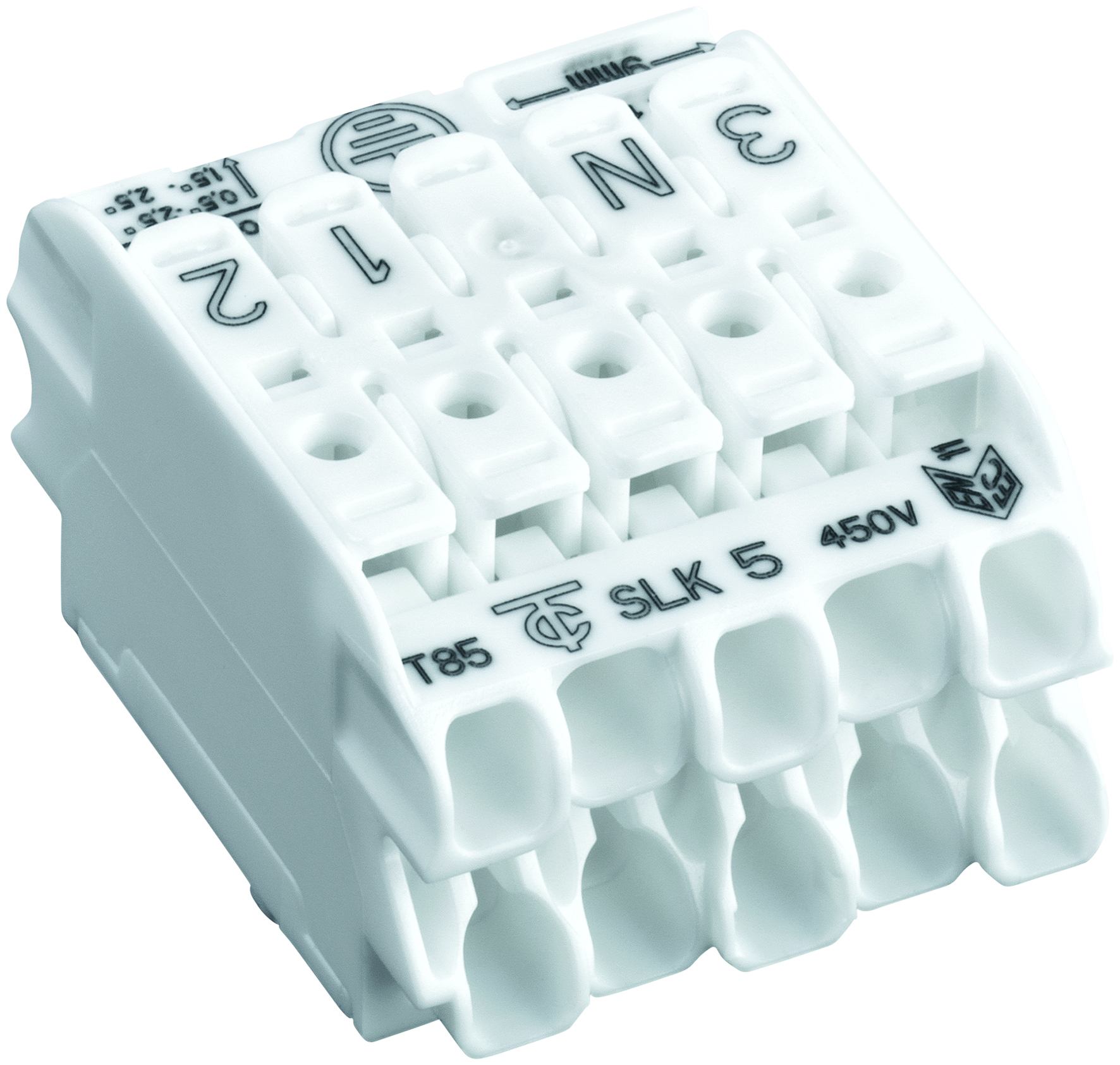 Svorkovnice SLK 5/5 (3-N-E-1-2) pro svítidla, bezšroubová, PC, bílá /88167817/