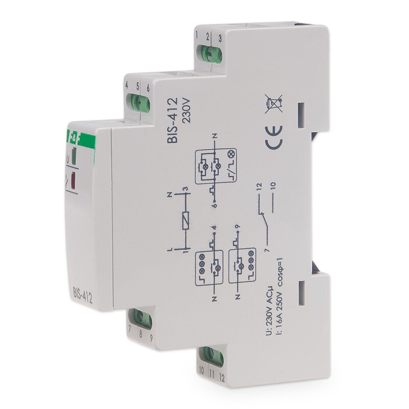 Skupinové (hotelové) impulzní relé (bistabilní) BIS-411-LED/230 umožňují zapínání a vypínání osvětlení nebo jiných elektrických zařízení z několika různých bodů pomocí paralelně zapojených tlačítek (monostabilních vypínačů) a disponuje možností připojení centrálního ovládání.