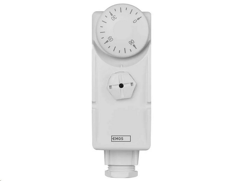 Příložný manuální jímkový termostat montovaný do jímky. Jímka je opatřena vnějším závitem. Snímá teplotu vody v zásobnících teplé užitkové vody a nebo v topných systémech. Umožňuje regulaci teploty, hlídání teplotních omezení a funkci poklesu teploty.