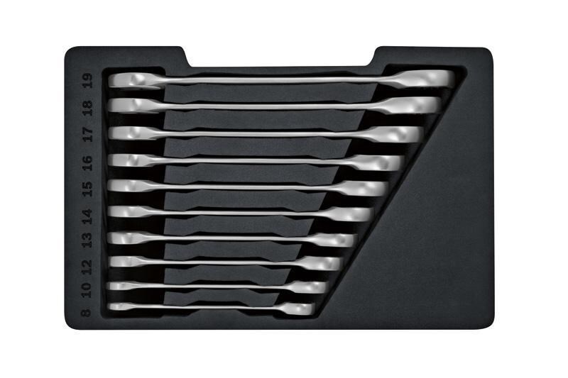 Ideální ráčnové klíče do stísněných prostorů, protože bezzubá ráčna vyžaduje úhel natočení méně než 1 stupeňKaždý klíč kombinuje otevřený klíč s ráčnovým klíčem v jediném nářadíVyrobeno z chrom-vanadiové oceli se dvěma kalenými šestihrannými kroužky pro extra pevnost a vysokou odolnost