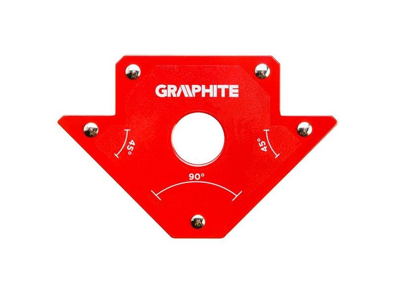 GRAPHITE magnet na svařovací úhel (ref. Č. 56H902) umožňuje fixovat svařované díly pod úhlem 45˚ nebo 90˚. Silné feritové magnety drží svařované kousky a svářeč nechává dvě volné ruce. Dodatečný otvor slouží pro snazší vytažení magnetu po dokončení práce.