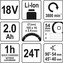 Napájení pomocí akumulátoru 18V Li-Ion 2 Ah, s rychlým 1 hod nabíjením. A 4 stupňovou indikací nabití.