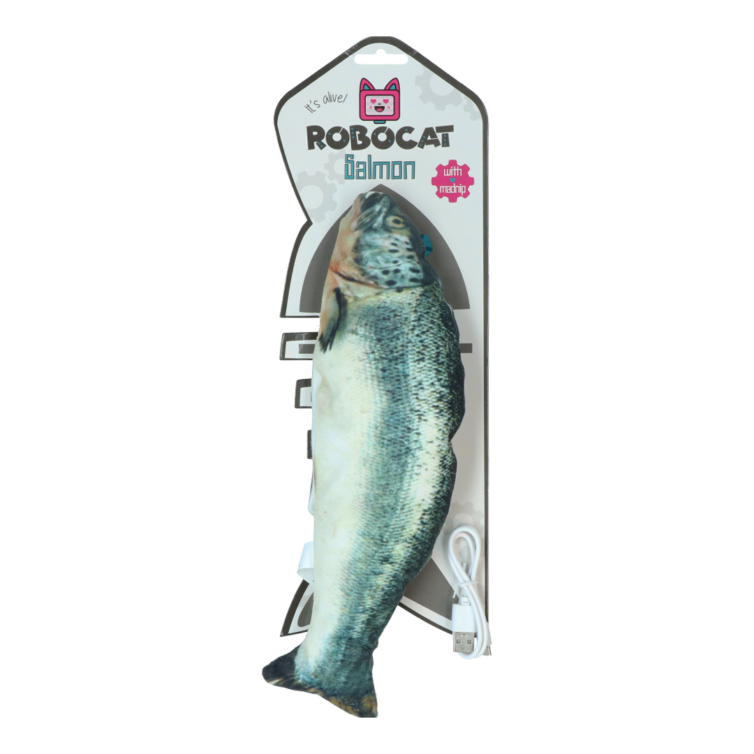 Robocat losos bude vaši kočku neustále vybízet ke hře a samotnému úlovku. Tato ryba se pohybuje sama a je také naplněna Madnipem. Není hračka jako hračka, samotný vzhled spíše připomíná živého lososa u vás doma, který skáče, svíjí se a pohybuje se.