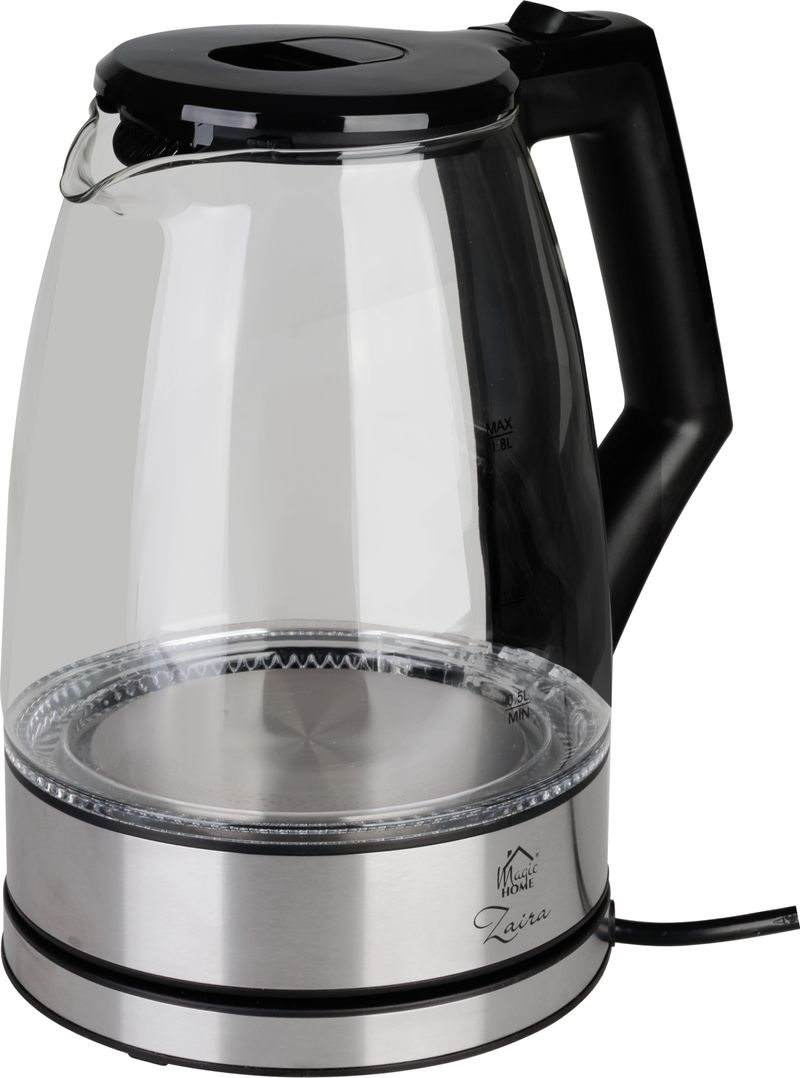 Skleněná rychlovarná konvice z odolného čirého borosilikátového skla.