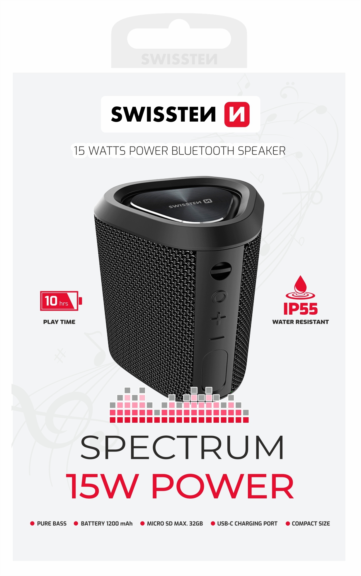 Objevte svobodu poslechu všude, kam jdete! Bluetooth reproduktor SWISSTEN SPECTRUM vám přináší silný zvuk i kompaktní rozměry, díky kterým si hudbu vychutnáte kdykoliv a kdekoliv bez obav z vody nebo prachu.