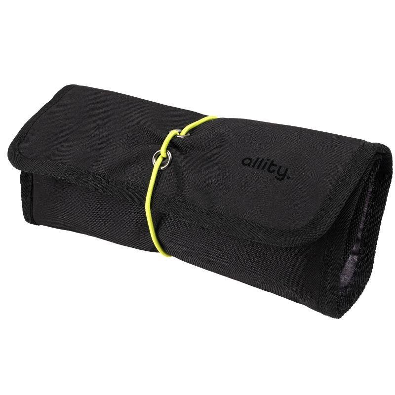 Maximální funkčnost v kompaktním provedení - náš cestovní organizér Allity pojme širokou škálu příslušenství, od kabelů a nabíječek po powerbanky a další nezbytné věci. Promyšlené přihrádky a kapsy různých velikostí a tvarů udržují obsah uspořádaný a snadno přístupný. Rolovací konstrukce s elastickým uzávěrem se přizpůsobuje množství uložených předmětů a zajišťuje stabilní a bezpečné uzavření bez ohledu na to, jak je plný.