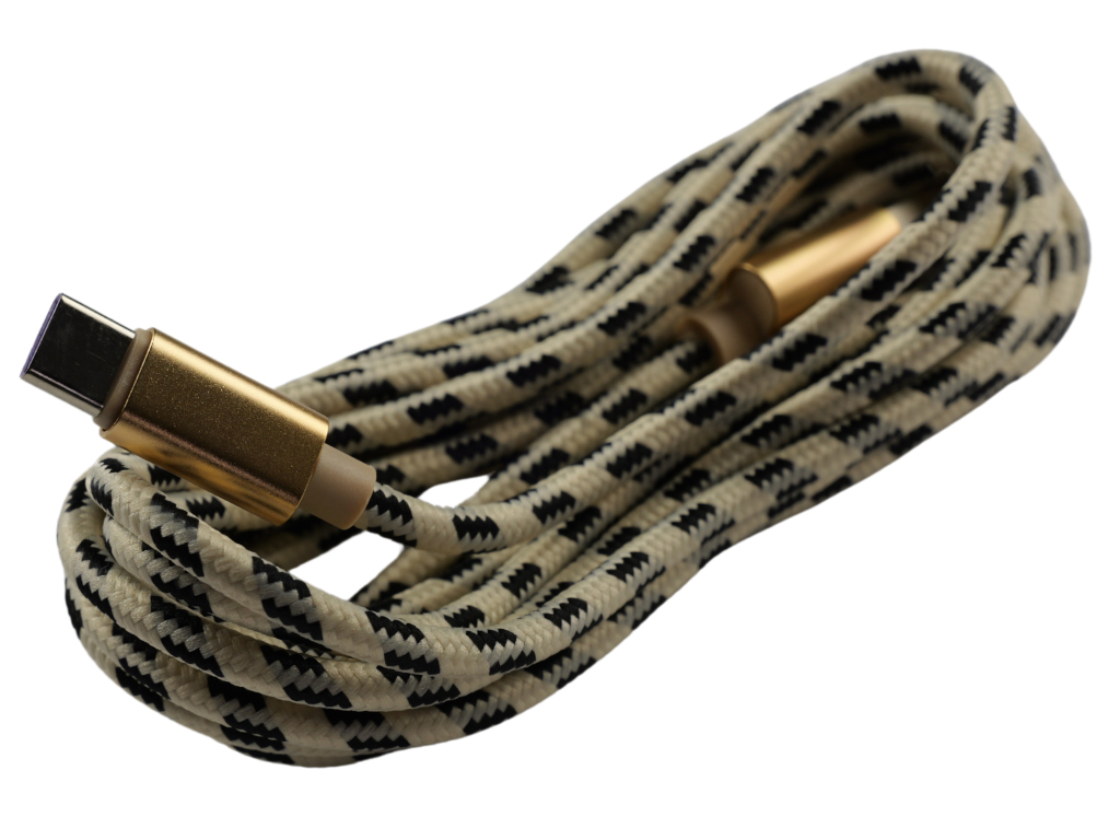 Pletený kabel USB na USB-C 3m,Béžovo-černý