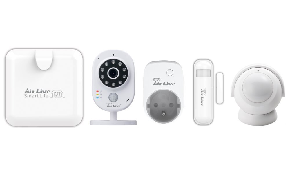 Kompletní sada s největším množstvím senzorů a kamerou pro domácí zabezpečovací systém založená na technologii Z-Wave. Sadu lze použít na různé automatické domácí aplikace. Jednotlivé prvky lze jednoduše ovládat pomocí aplikace AirLive SmartLife Plus