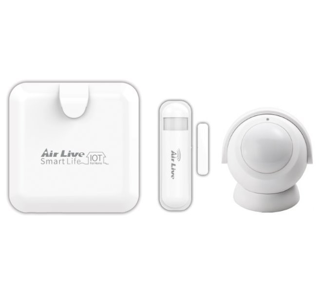 Startovní sada pro domácí zabezpečovací systém založená na technologii Z-Wave. Sadu lze použít na různé automatické domácí aplikace. Jednotlivé prvky lze jednoduše ovládat pomocí aplikace AirLive SmartLife Plus