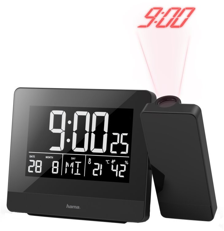 HAMA budík Plus Charge/ s projekcí času/ USB konektor pro nabíjení mobilu/ černý