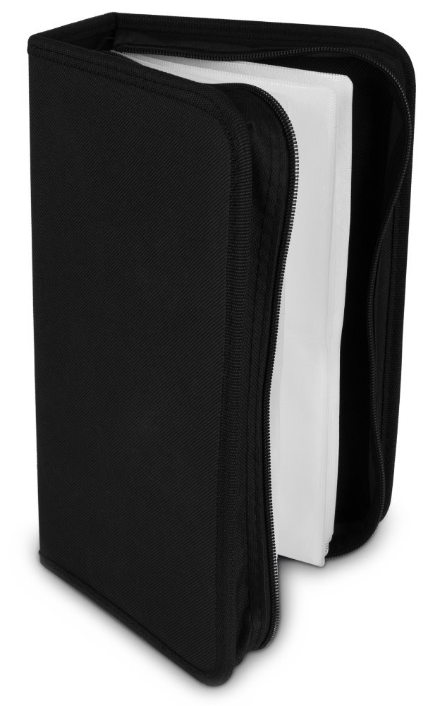 Zapínací textilní pouzdro na uložení vetšího počtu CD nebo DVD disků. Disky mají vlastní přihrádky zaručující ochranu Vašich dat a umožňující rychlé dohledání každého disku.
