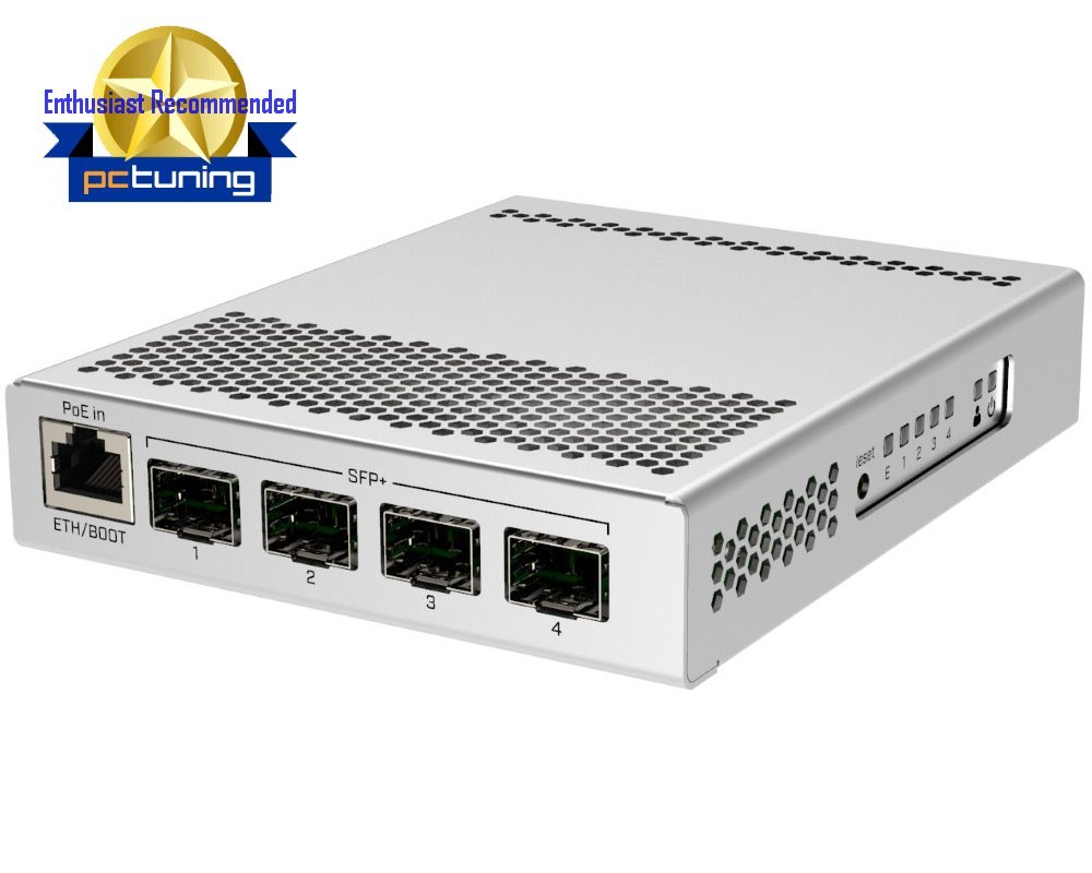 Cloud Router Switch CRS305-1G-4S+IN je dodáván v kovovém indoor case a nabízí 4x SFP+ a 1x Gbit port. Switch má zálohu napájení (dva zdroje).