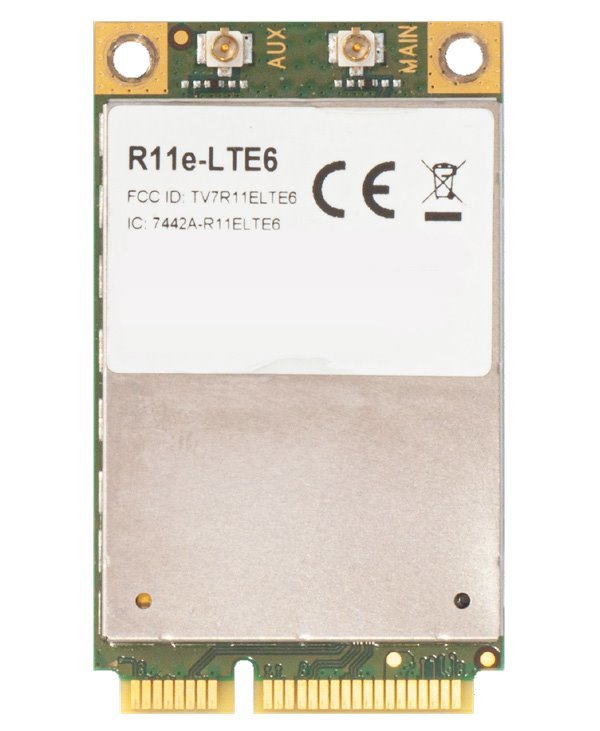 LTE modem od MikroTiku ve formátu Mini PCI Express karty, který je podporovaný v RouterOS od verze 6.11. Karta podporuje GSM sítě 2G / 3G / 4G / LTE s podporou pásem 1/2/3/5/7/8/12/17/20/25/26/38/39/40/41n. Jedná se o kvalitní modem, který podporuje až 300 Mbps přenosovou rychlost downlinku. Anténní výstup je 2x U.FL konektor.