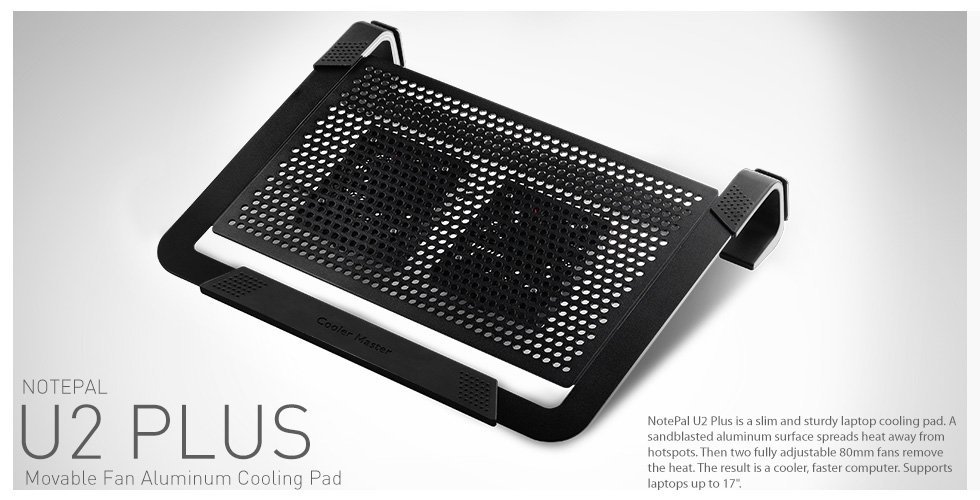 NotePal U2 PLUS je tenká a robustní chladící podložka pod notebook. Pískovaný hliníkový povrch absorbuje teplo od hotspotů a dva plně nastavitelné 80 mm větráky ho poté ventilují ven. Výsledkem je chladnější a rychlejší počítač. Podložka podporuje notebooky do velikosti 17".