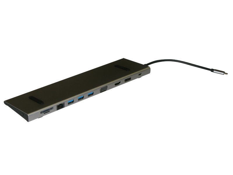 XtendLan Dokovací stanice 11in1 USB-C, HDMI(F)4k, DisplayPort(F) 4k,VGA(F), Gigabit LAN, 3xUSB3.0, SD/TF, 3.5mm,USB C PD