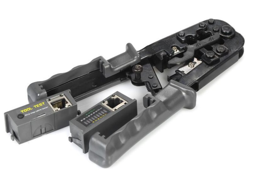Tyto kleště s ohmickým testerem lze použít ke krimpování kabelů typu RJ-45, RJ-12, RJ-11 a R-J10 a jsou uzpůsobeny jak pro práci s UTP, tak STP. Kleště disponují funkcí indikace zapojení pinů, automatickým spořičem napájení, indikací nízkého napájení a LED signalizací. Jsou vyrobeny z kvalitního materiálu, který zajišťuje jejich dlouhou životnost a spolehlivost. Jsou odolné a díky pohodlné rukojeti se s nimi dobře pracuje. Napájení je realizováno skrze LR-44 baterie.