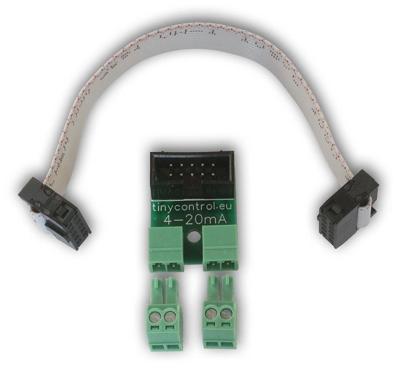 Rozšiřující modul pro LAN ovladač v3 umožňuje připojit další dva analogové vstupy v rozsahu 4 - 20mA. Po připojení k LAN ovladači v3 jsou analogové vstupy označené jako INPA5 a INPA6. Je třeba dodržet polaritu viz obrázek.