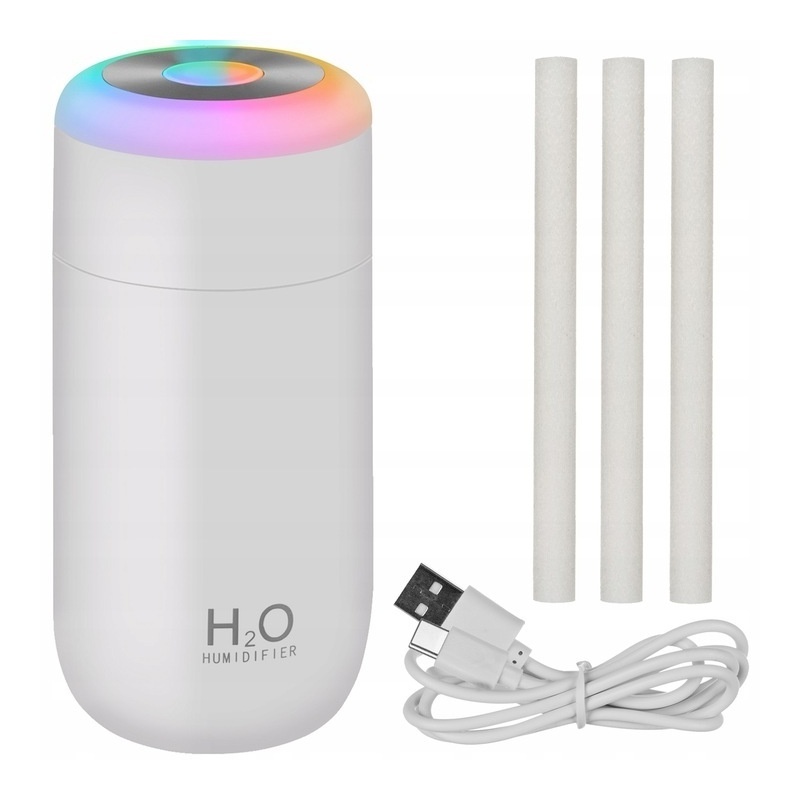 Ultrazvukový zvlhčovač vzduchu s LED NP1636 3v1 se připojuje prostřednictvím přiloženého USB kabelu na zdroj 5V což může být nabíječka telefonu nebo Váš počítač, notebook apod. 300 ml nádržka při účinnosti 30-40ml/h po dobu 5-10 hodin. Vestavěné led světlo s volbou bílého světla nebo barevného pohyblivého světla umožňuje využití tohoto zvlhčovače také jako pomocné večerní světlo.