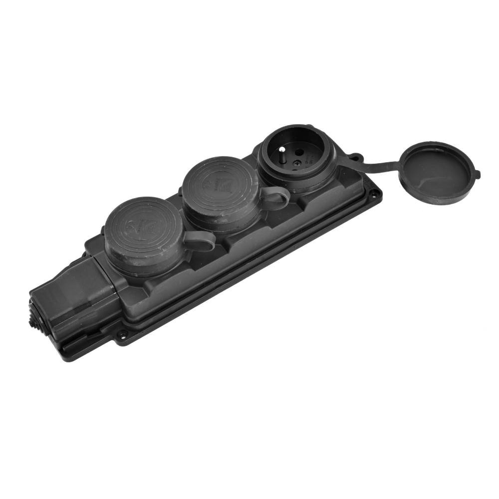 Zásuvka gumová 3-násobná 16A/250V, IP44, černá
