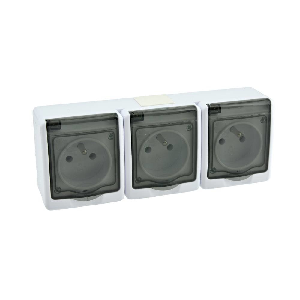 Trojzásuvka bílá s kouřovými víčky IP44, 230V /16A číst celé