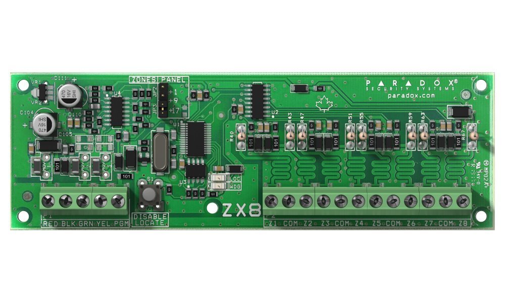 Drátový expandér zón, připojený na BUS sběrnice ústředen SP/MG/EVO. Expandér obsahuje 8 vstupů, u ústředen DIGIPLEX s možností zapojení ATZ. V systému DIGIPLEX EVO je počet instalovaných expandérů omezen počtem modulů na sběrnici BUS ústředny.