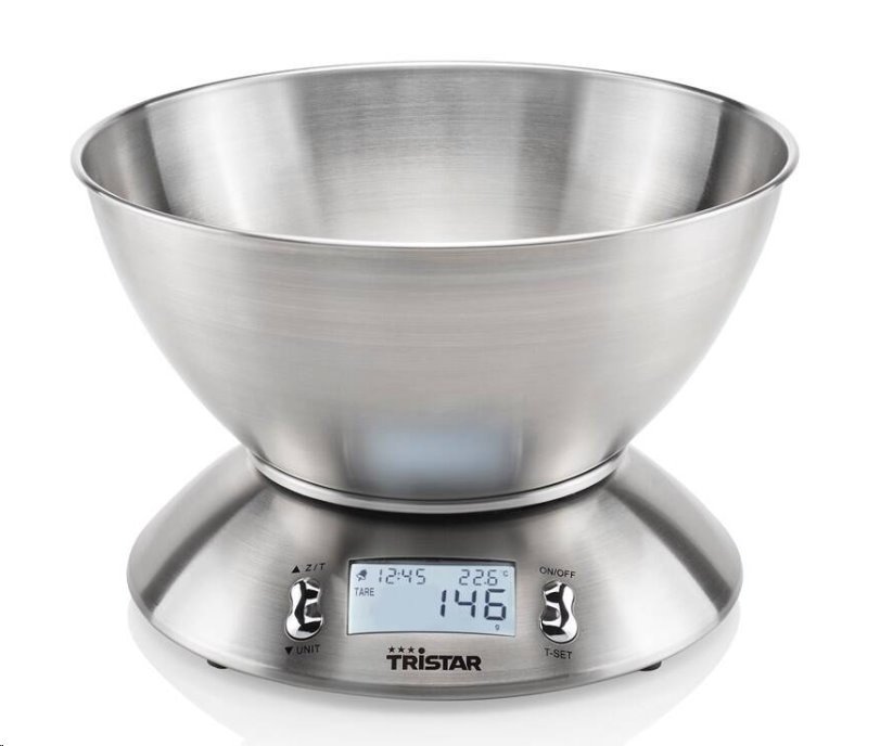 Perfektní pomocník pro vaše pečení je váha Tristar KW-2436 s krásným nerezovým vzhledem, která perfektně doplní každou kuchyň. Skvěle zvládne vážit suroviny pro vaření až do 5 kg. Mísa je odnímatelná a nabízí obsah až 2,5 litru. Skvělá funkce TARE pro přesné dovažování ingrediencí. Možnost vážení v kilogramech nebo librách, volba je jen na vás.