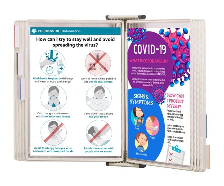 Kompletní nástěnný prezentační systém držáku a rámečků do prostředí náchylnému k šíření mikrobů - veřejná místa, nemocnice, kliniky, laboratoře, pohostinství a potravinářský průmysl. Obsahuje ionty stříbra, přírodní antimikrobiální činidlo, které deaktivuje usazené mikroorganismy (bakterie, plísně, kvasinky a viry). Stojan lze přikoupením doplňkových dílů rozšířit až na kapacitu 30 rámečků. Doporučeno obměňovat rámečky s kapsami každé 2 roky.