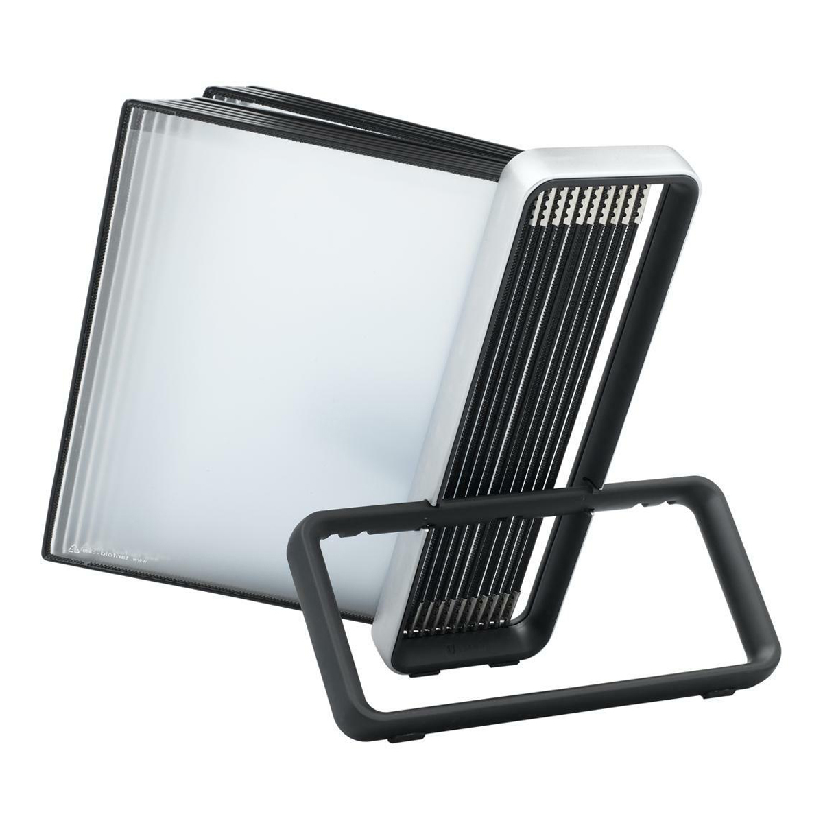 Kompletní stolní prezentační systém ve stylovém designu. Velkolepý tvar se vyznačuje vysoce kvalitními materiály. Rám je z broušeného hliníku, uvnitř je měkký, černý ABS plast. Dá se jednoduše zaklapnout a rozebrat. Balení obsahuje držák a zobrazovací desky. Rám displeje z ocelového drátu potaženého plastem má za následek odolný a zároveň pružný okraj. Díky kovovým otočným čepům jej lze snadno vložit a vyjmout z držáku. Vhodné pro použití v kancelářích a recepcích. Kvalitní nástěnný držák z hliníku a ABS plastu Nereflexní, silné a odolné PVC desky Desky potažené plastem a orámované ocelovým drátem Prostorové rozměry: 485 × 350 × 290 mm 10 let záruka