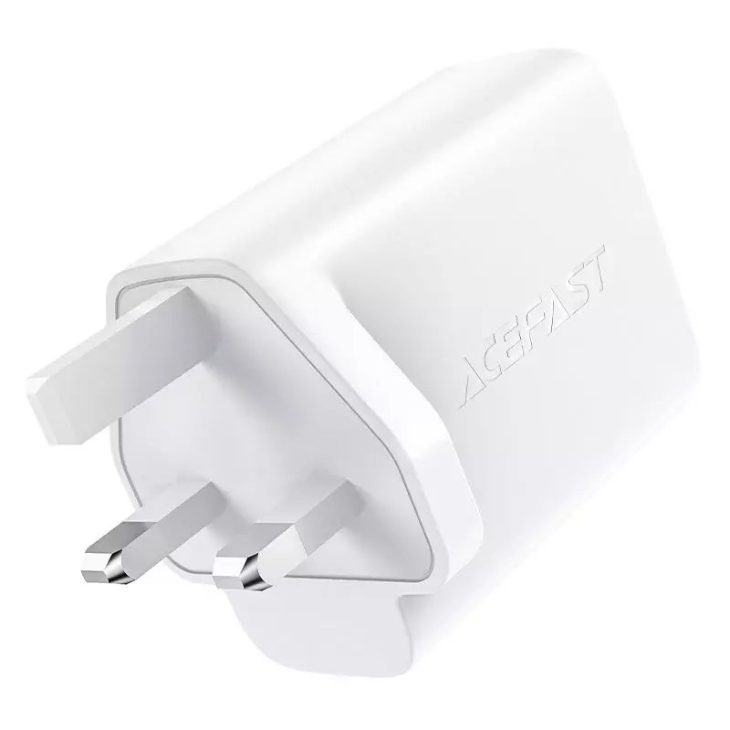 Rychlonabíječka Acefast. Určeno pro britský trh, pasuje do zásuvek typu UK. Disponuje dvěma porty USB Type-C, které umožňují nabíjení výkonem až 50W. Umožňuje rychlé nabíjení zařízení vč. ve standardech PPS, Power Delivery, Quick Charge 3.0, AFC a FCP. Je vyroben z ohnivzdorného PC materiálu. Byl vybaven mnoha ochranami, jako je přehřátí, přepětí, vysoké napětí nebo přetížení. Elektronické komponenty nabíječky jsou vyrobeny technologií GaN, tedy na bázi nitridu galia, nikoli na křemíku. GaN znamená lepší efektivitu práce a nižší spotřebu energie.