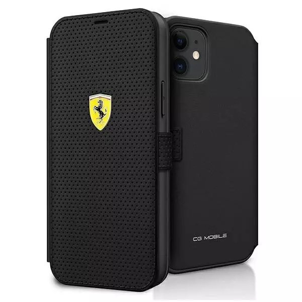 Pouzdro na telefon Ferrari iPhone 12 mini 5,4" černá/černá kniha On Track Perforated