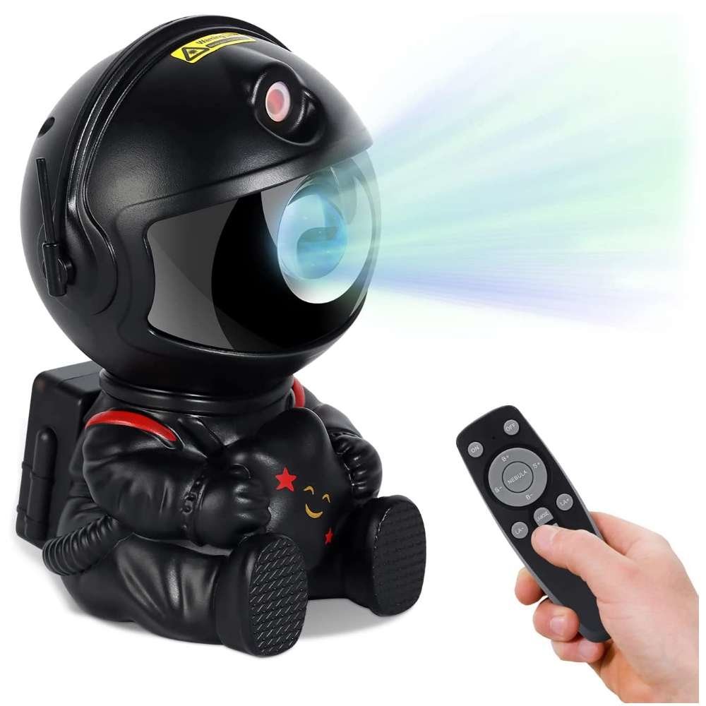 - Neobvyklý LED projektor hvězd ve tvaru sedícího astronauta s hvězdou v rukou