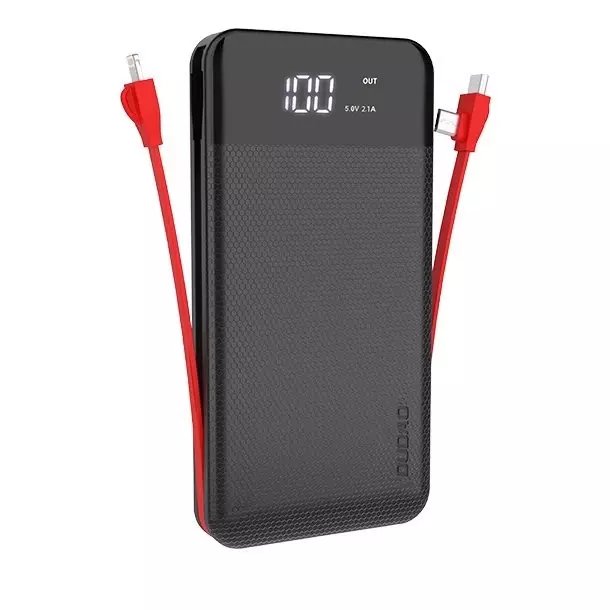 Dudao 2x USB powerbanka 10000mAh 2A wbudowany kabel 3w1 Lightning / USB Typ C / micro USB 3A: