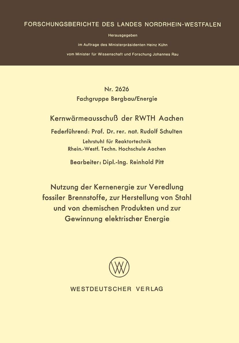 Nutzung der Kernenergie zur Veredlung fossiler Brennstoffe, zur Herstellung von Stahl und von chemischen Produkten und zur Gewin (německy)