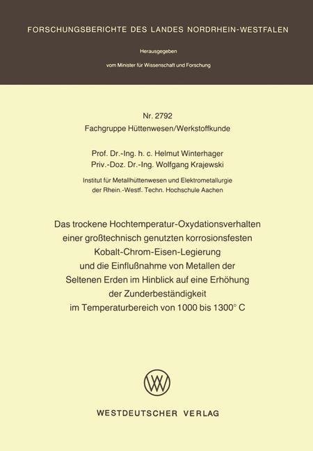 Das trockene Hochtemperatur-Oxydationsverhalten einer großtechnisch genutzten korrosionsfesten Kobalt-Chrom-Eisen-Legierung und (německy)